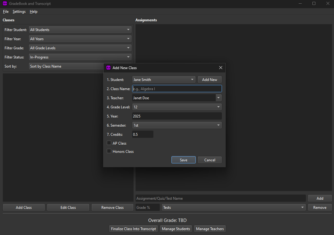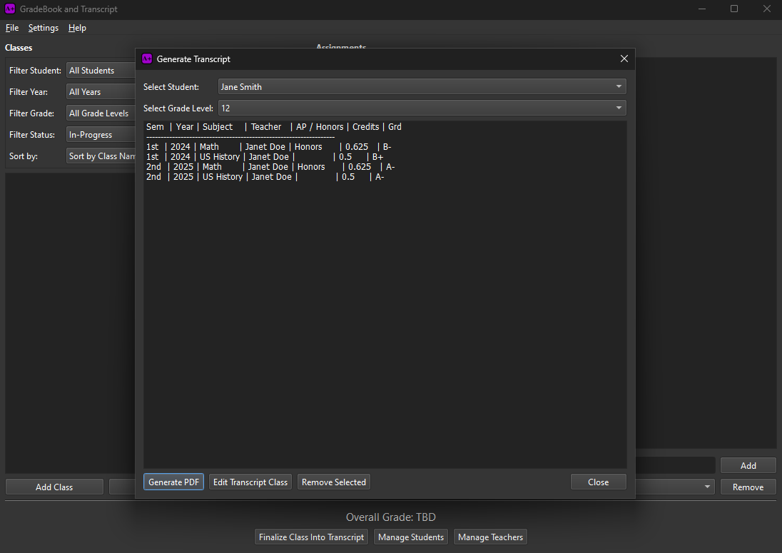 GradeBook and Transcript is a privacy-centric application tailored for homeschooling teachers and administrators. It allows users to effectively track grades, document classes and homework, and generate comprehensive PDF transcripts for multiple students. There are no subscription fees, and all data is stored on your own device.